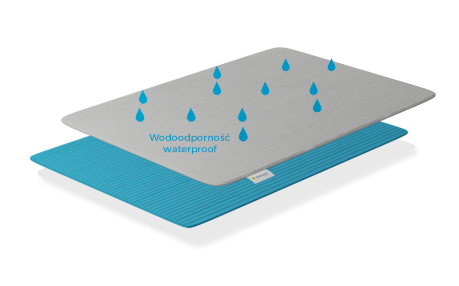 Dedesubt există o membrană impermeabilă care oprește lichidele, dar permite aerului să circule.
