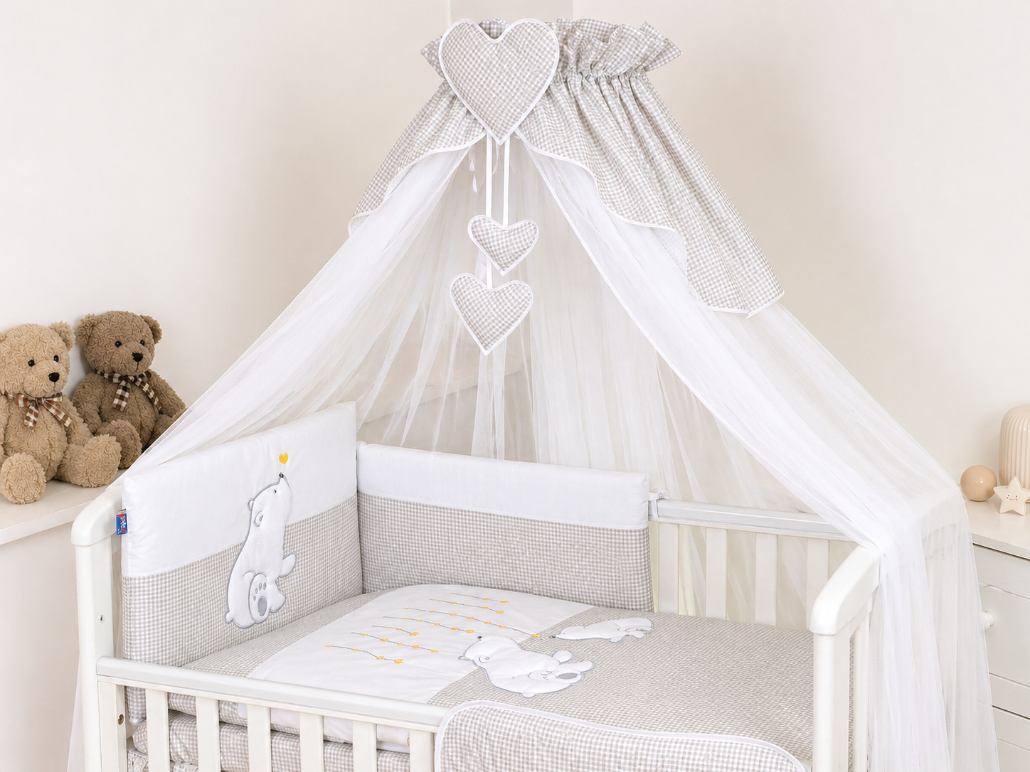 Baldachin din tul pentru pătuț, 600x160 cm, Bear Heart Gri – Amy | Protecție, confort și decor elegant