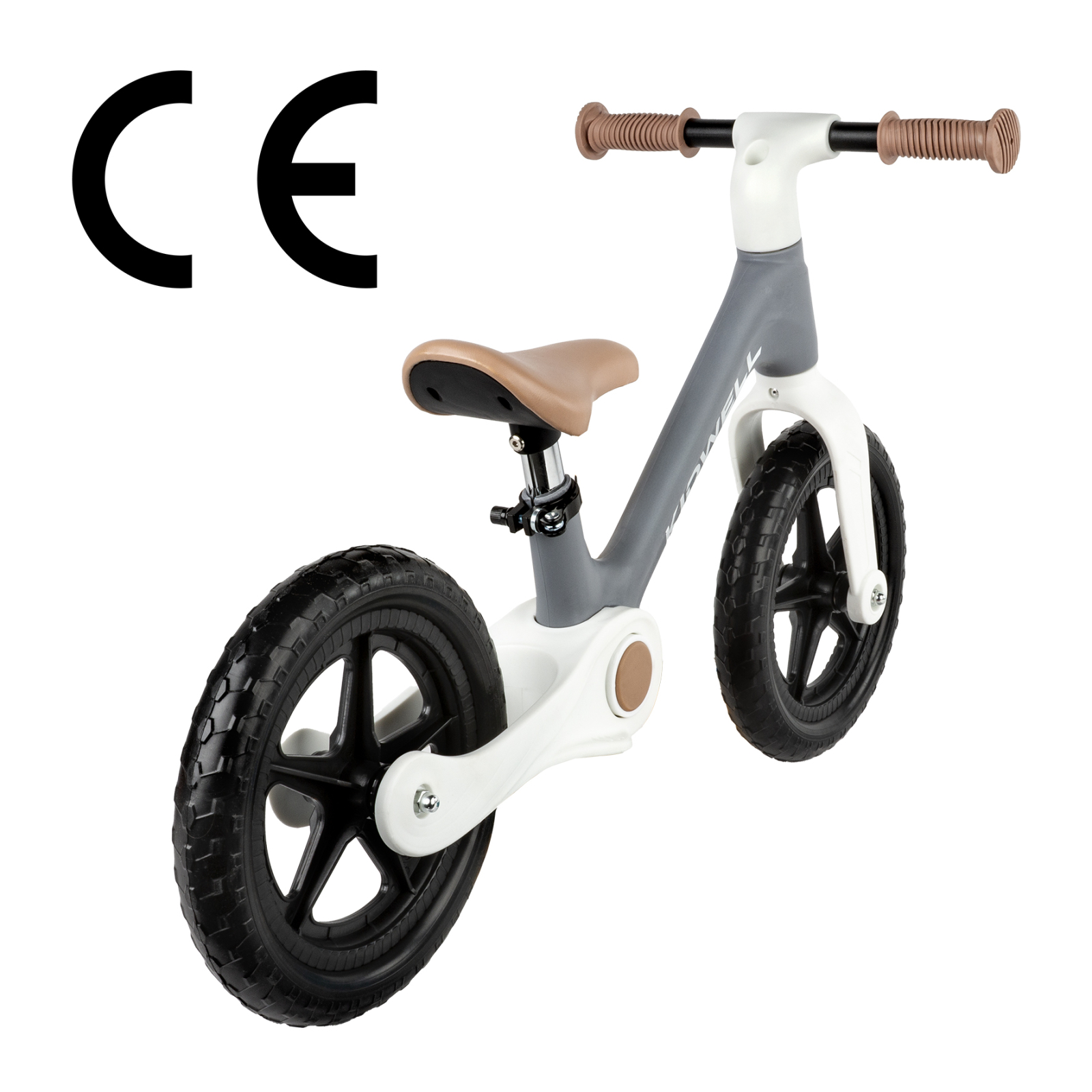 Bicicleta de echilibru fara pedale pentru copii, pliabila, Kidwell FLEX Gray, ultra usoara 2.9 kg, roți EVA 29 cm, reglabilă, 80–120 cm, max. 30 kg