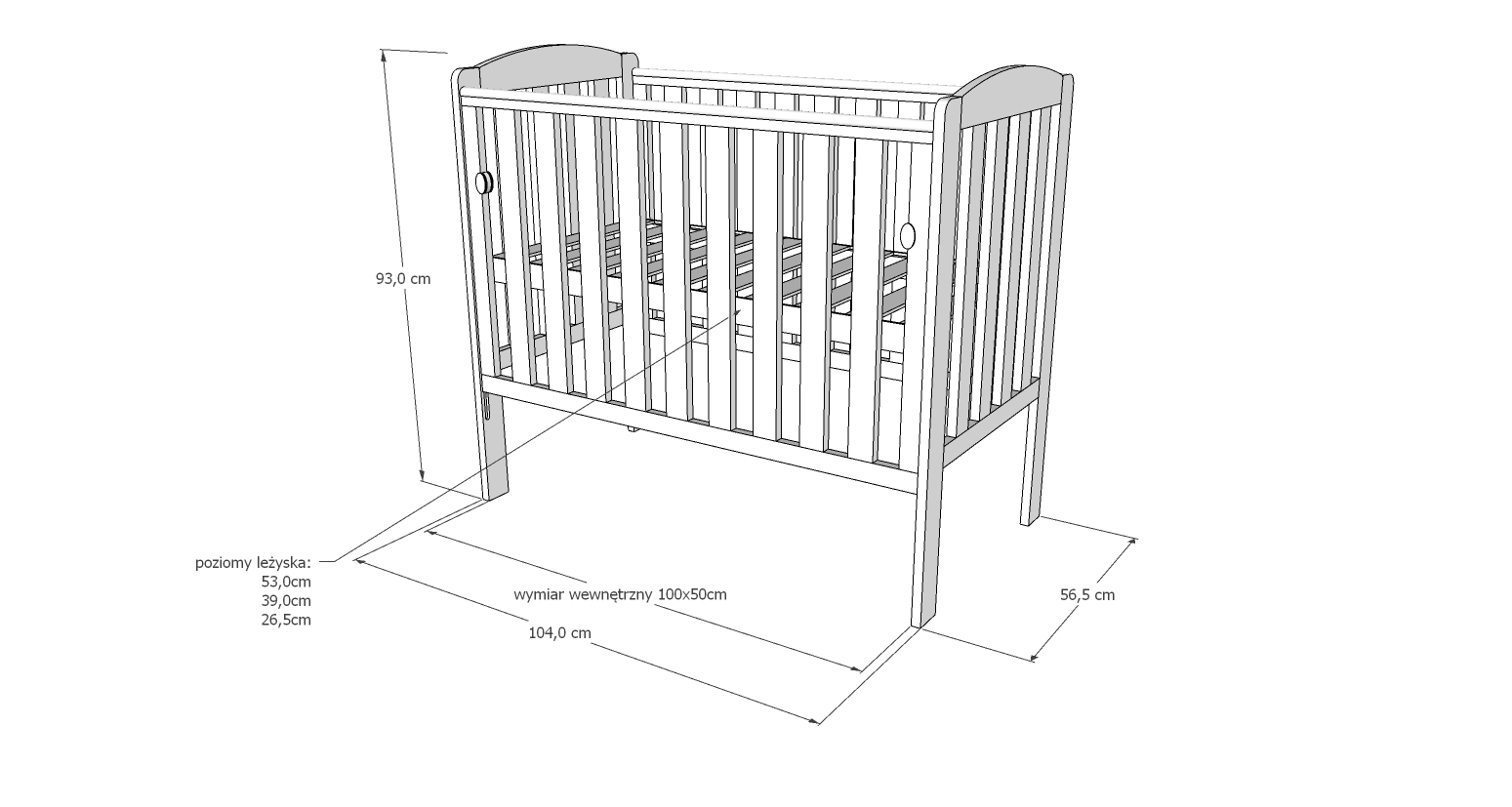 ✔ 3 niveluri de reglare a somierei – crește odată cu copilul