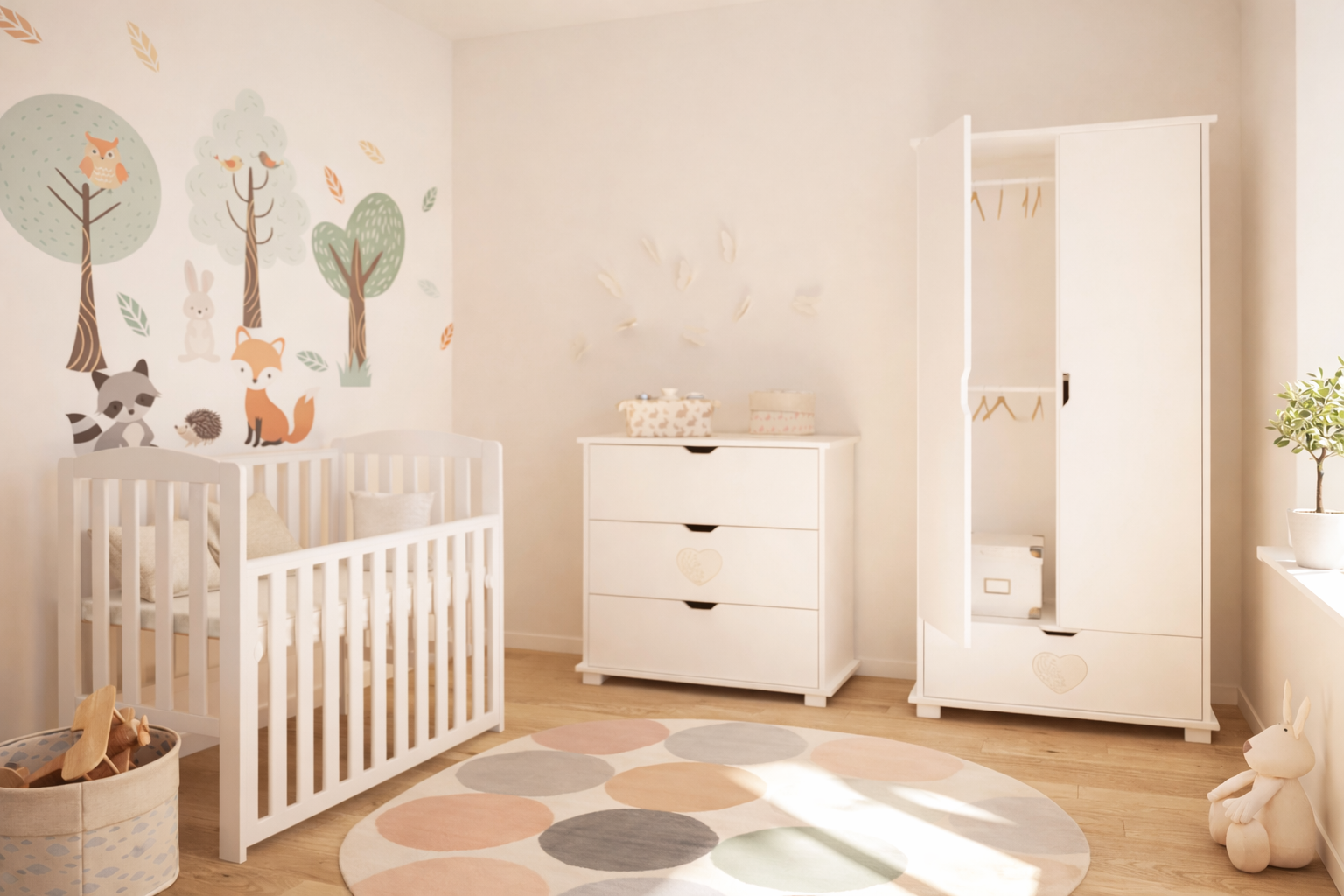 Construit din MDF de calitate superioară și placaj din lemn masiv, pătuțul asigură stabilitate, durabilitate și utilizare zilnică fără griji.