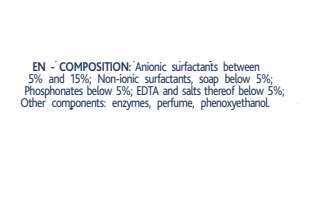 - Dozaj: pentru masinile de spalat sau pentru spalat manual, pentru 10 litri de apa, pentru rufe murdare normal: 55 ml