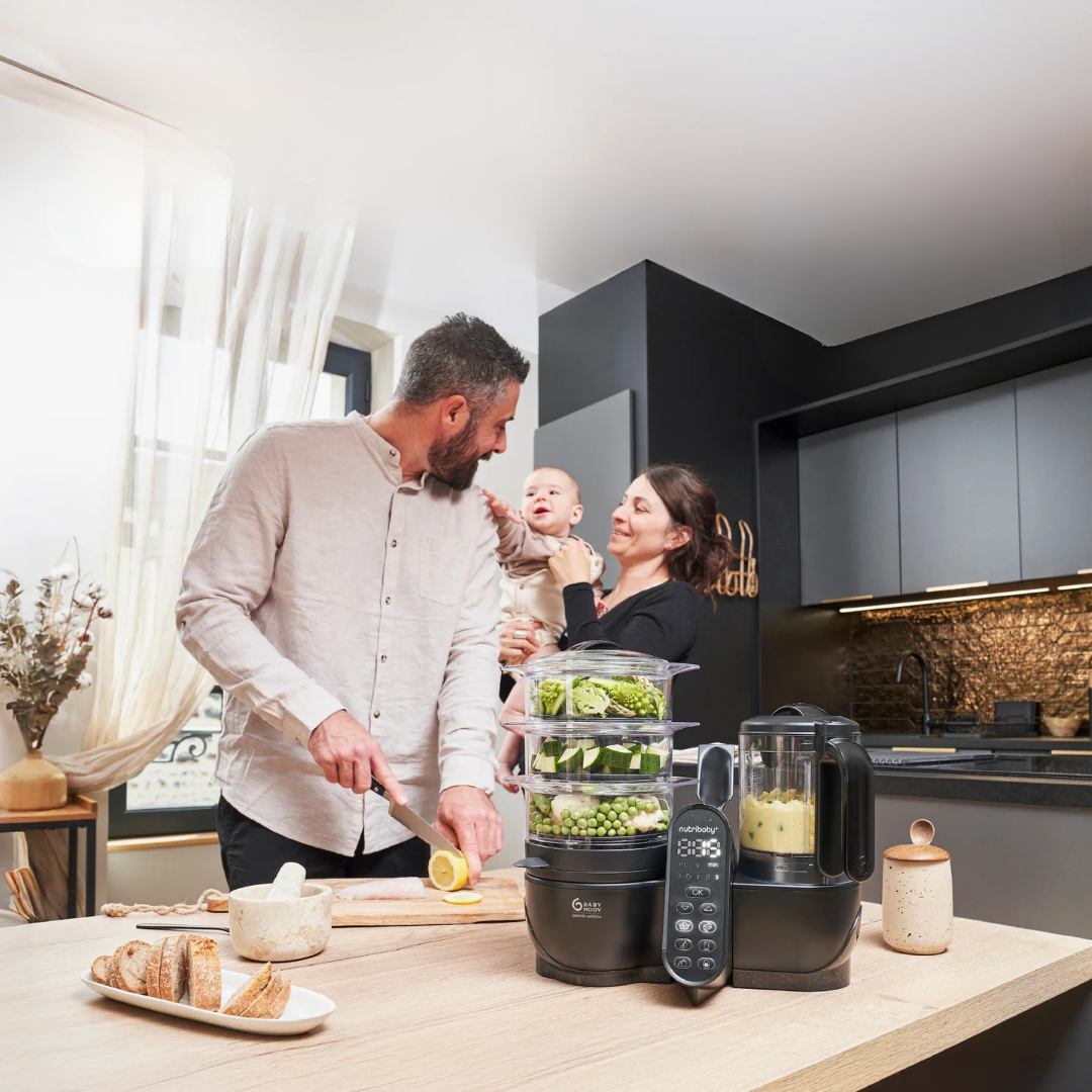 Pentru a va ajuta sa aveti un stil de viata sanatos, Nutribaby (+) XL va permite sa gatiti preparatele extrem de rapid, intr-un timp record - este dotat cu o consola centrala intuitiva si tactila cu 1 buton = 1 functie. Permite in acelasi timp atat gatirea la abur, cat si blenduirea mancarii. Astfel, gatitul devine simplu ca o joaca de copii!