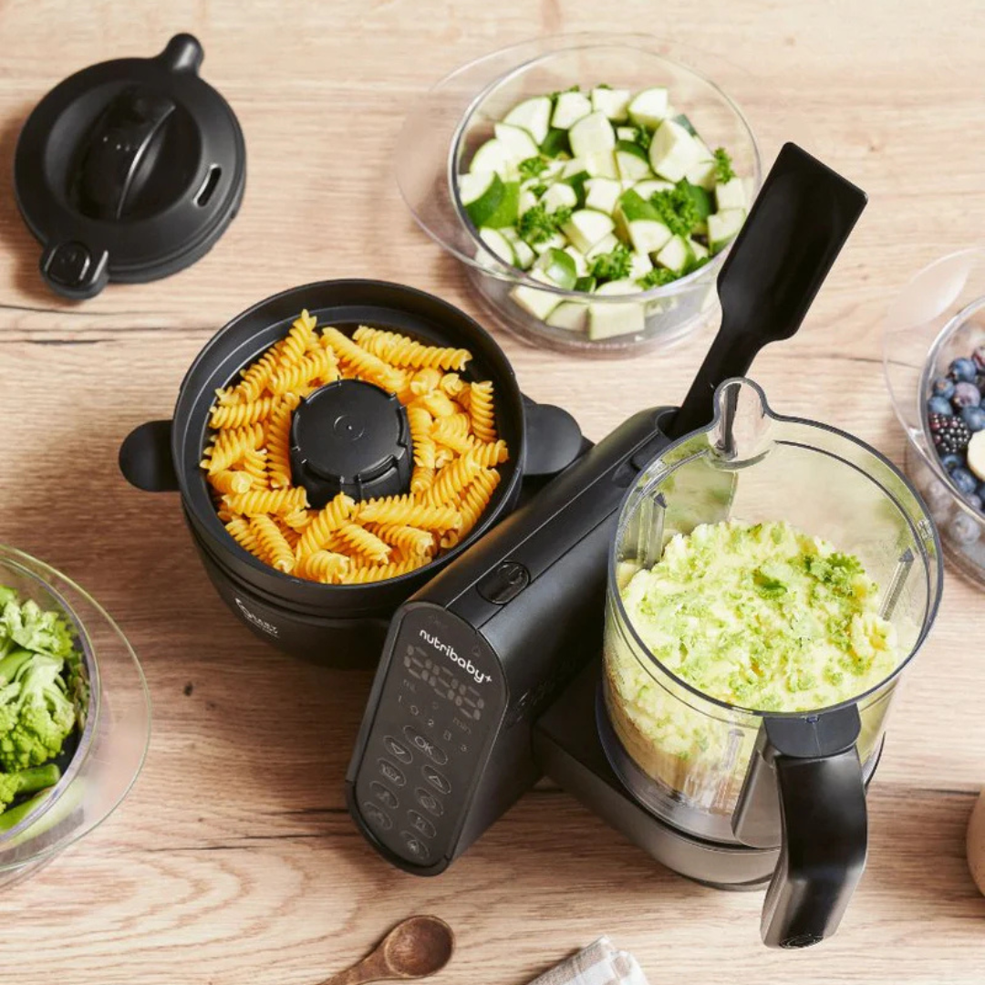 Robotul de bucatarie Nutribaby (+) XL va permite sa pregatiti mese complete si echilibrate in cantitati mari datorita celor trei recipiente separate de gatit si a bolului sau mare de amestecare. Usor de utilizat, este perfect pentru a gati mancare delicioasa si hranitoare pentru intreaga familie, preparand retete variate si sanatoase. Este extrem de util deoarece se poate utiliza in toate etapele dezvoltarii micutului. Nutribaby (+) XL este aliatul pentru mese variate in cantitati mari!