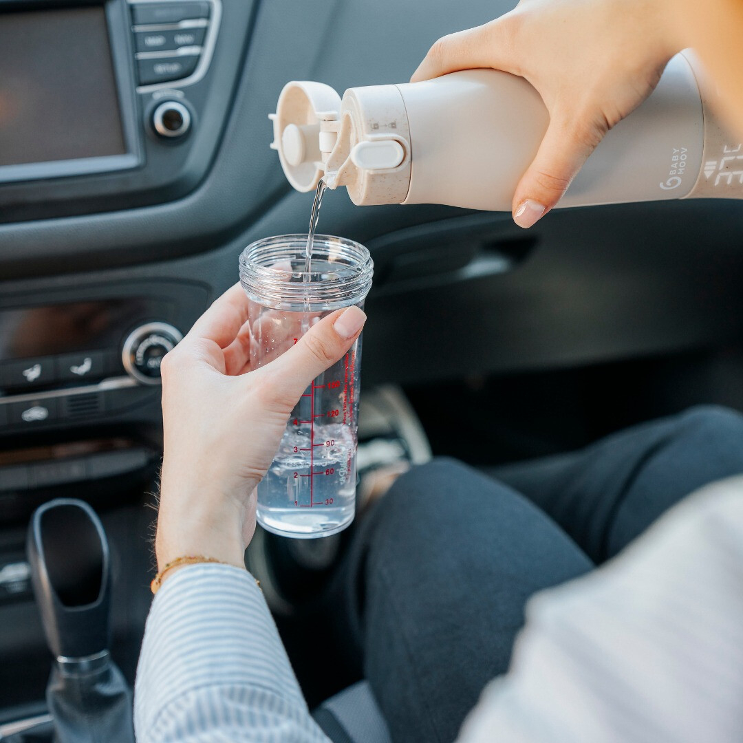 Ergonomic si usor de transportat, cu capacul sau sigur, il puteti puteti in geantă fara a exista vreun risc de varsare. Orificiul de turnare faciliteaza transferul apei fierbinti in biberonul bebelusului.