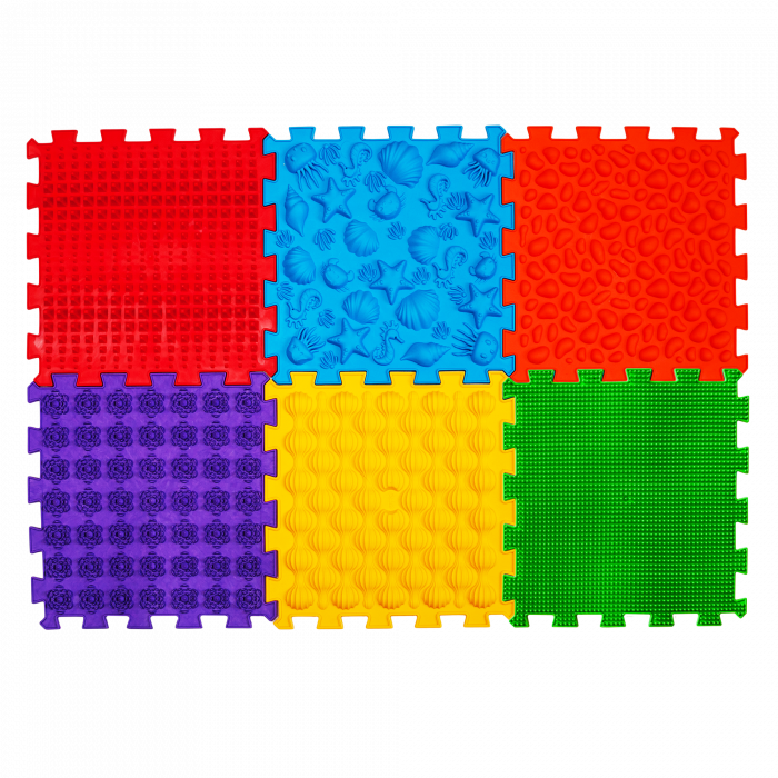 Covorașul ortopedic pentru masaj este alcătuit din 6 plăcuțe tip puzzle (26x26 cm fiecare), ușor de asamblat și combinat, ce oferă o experiență senzorială unică. Texturile variate – iarbă, prundiș, scoici, marin, lotusi și piramide– stimulează mușchii tălpilor și zonele reflexogene, ajutând la prevenirea și corectarea problemelor ortopedice.