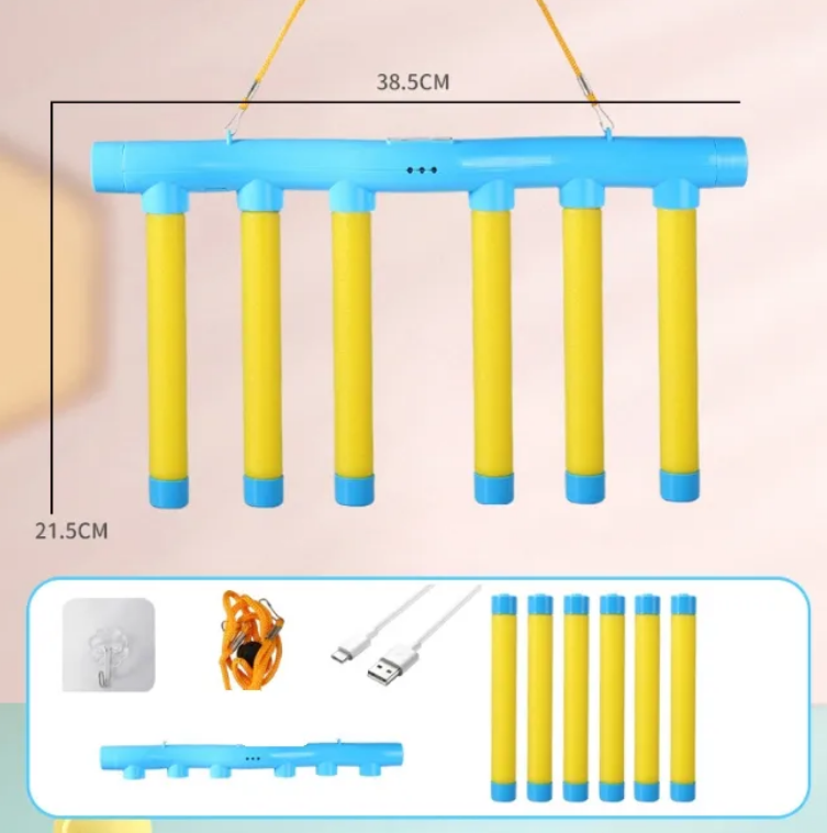• Componente: bară cu fixare, șase bastoane moi magnetice, șnur de agățat, cablu USB pentru încărcarea senzorului integrat