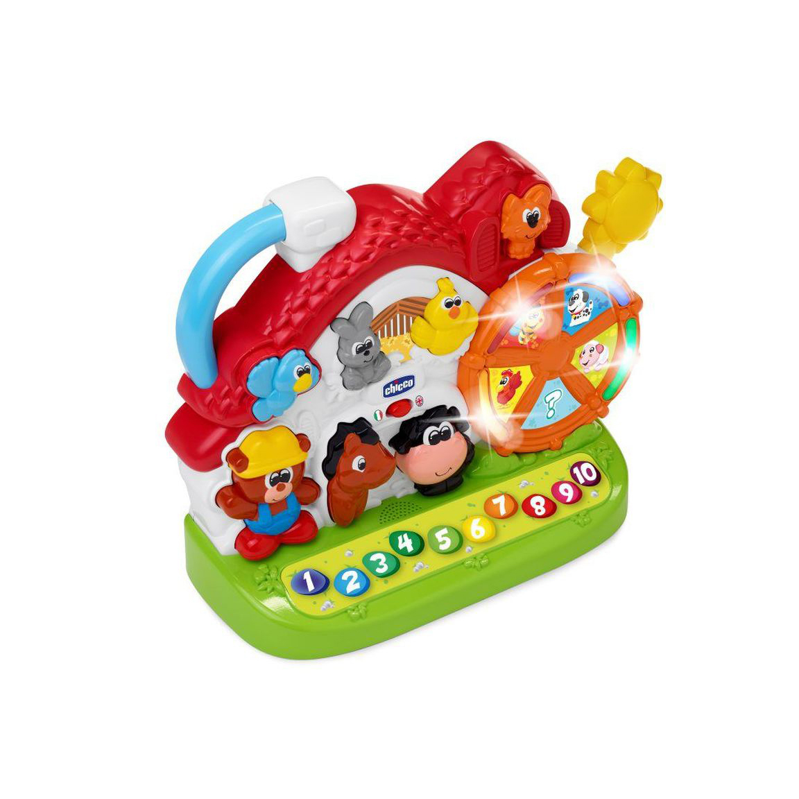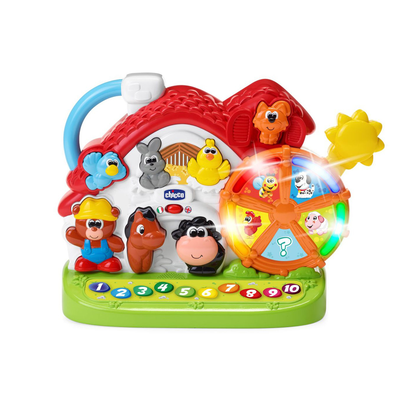 Centru de activitati portabil care trateaza cu succes unul dintre cele mai populare subiecte din lumea copiilor- animalele de la fermă. Ascultand cele 50 cuvinte, fraze, sunete si cantece, copilul se familiarizeaza cu muzicalitatea celor doua limbi in care se poate folosi jucaria: italiana/engleza si invata folosind cele 3 nivele evolutive ale jocului, accesand ursuletul care este selectorul de joc: