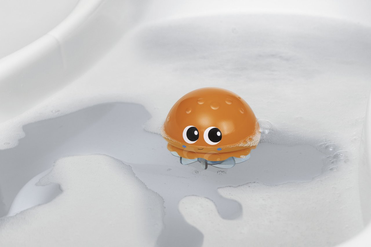 1. Miscare rotativa: roteste tentaculele pentru a vedea cum meduza se invarte singura in apa. Aceasta miscare amuzanta va capta atentia copilului si il va tine ocupat in timpul baii.