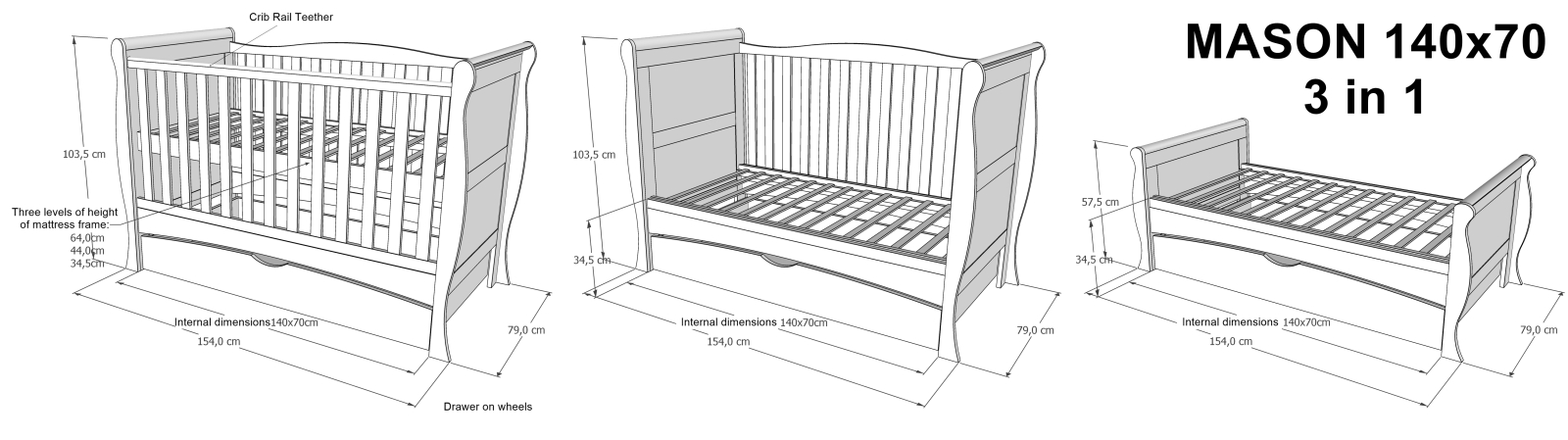 Pătuț 3 în 1: bebe → toddler → pat junior