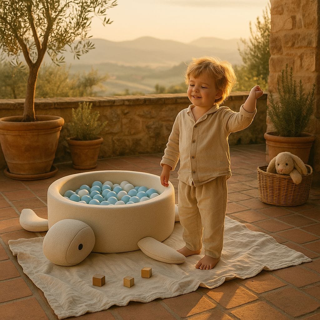 Este mai mult decât o piscină cu bile – este un spațiu senzorial de vis, moale ca o îmbrățișare și plin de farmec natural.