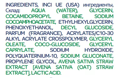- formula fara lacrimi cu 92% ingrediente naturale, curata cu delicatete pielea bebelusului inca de la prima baita datorita proprietatilor specifice extractului de ovaz, calmand totodata pielea iritata sau transpirata.