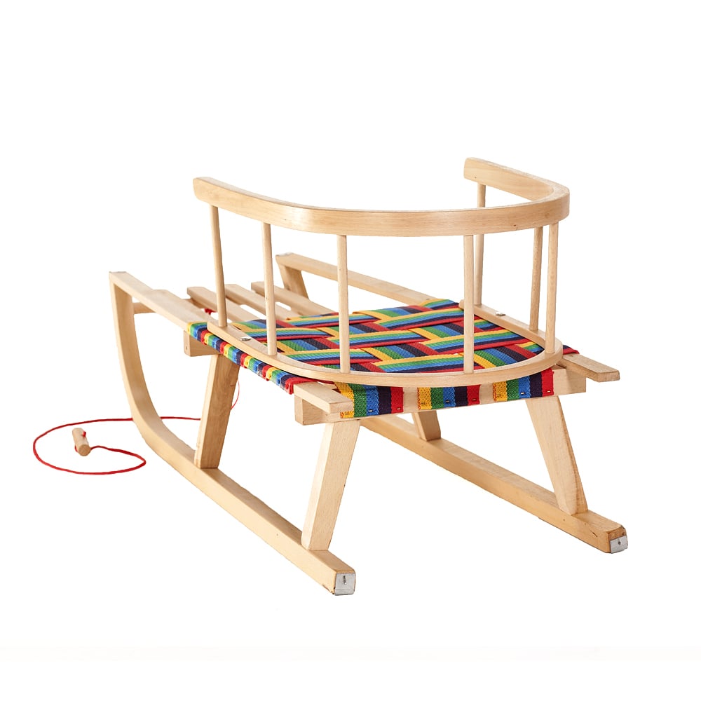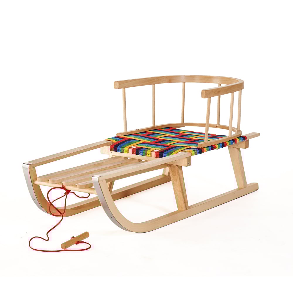 San-Drew Sanie Ultimate din lemn cu spătar și șezut cu chingi – model premium pentru copii | Sanie din fag cu șnur de tras