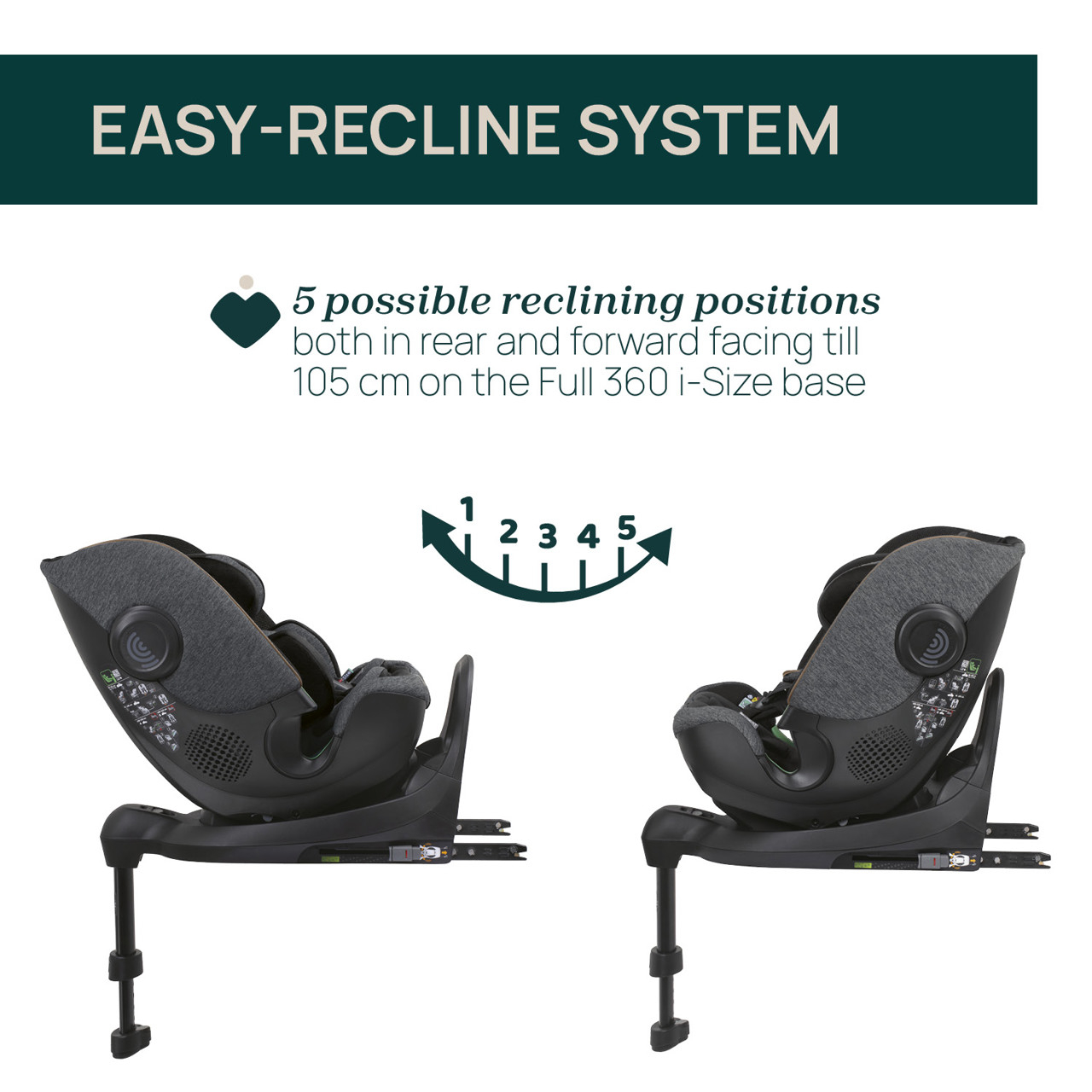 6. Are 5 poziții de înclinare indiferent că așezați scaunul bebe cu fața sau cu spatele la sensul de mers al masinii.