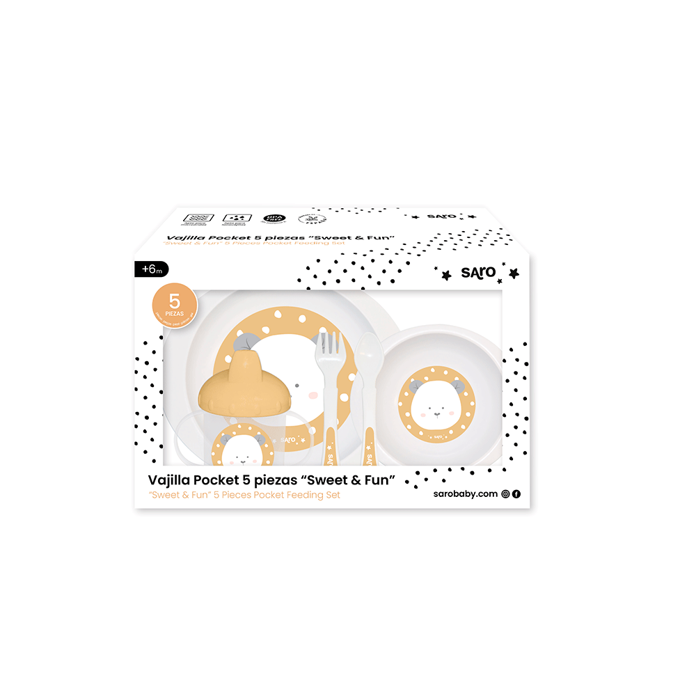 Saro Baby Set complet de masa, 5 piese, "Giraffe Party” Mustard