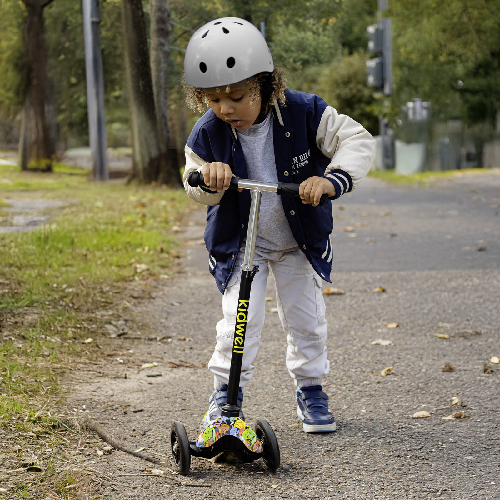 Trotineta Kidwell UNO dezvoltă abilitățile motorii, coordonarea mișcărilor și, cel mai important, îi aduce distracție copilului dumneavoastră. Mersul pe trotineta Uno este foarte distractiv și o modalitate excelentă de a-ți petrece timpul liber în aer liber. Cu siguranță va aduce multă bucurie fiecărui copil. Modelul Uno este o trotinetă de echilibru cu trei roți, ideală pentru începători, ușor de condus, stabilă și ușoară. Roțile sale luminoase vor încuraja activitatea. Specificații